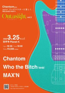 アウタサイトvol.3 Chantom pre.2nd E.P"ジャズマスターに宜しく"release party 2026.03.25(WED)@吉祥寺PLANETK OPEN 18:30/START 19:00 ▶︎ADV ¥3,500/DOOR ¥4,000 (+1D) <<<チケット販売中>>> 👉tiget 👉 WtB予約フォーム 👉 WtBLINE公式